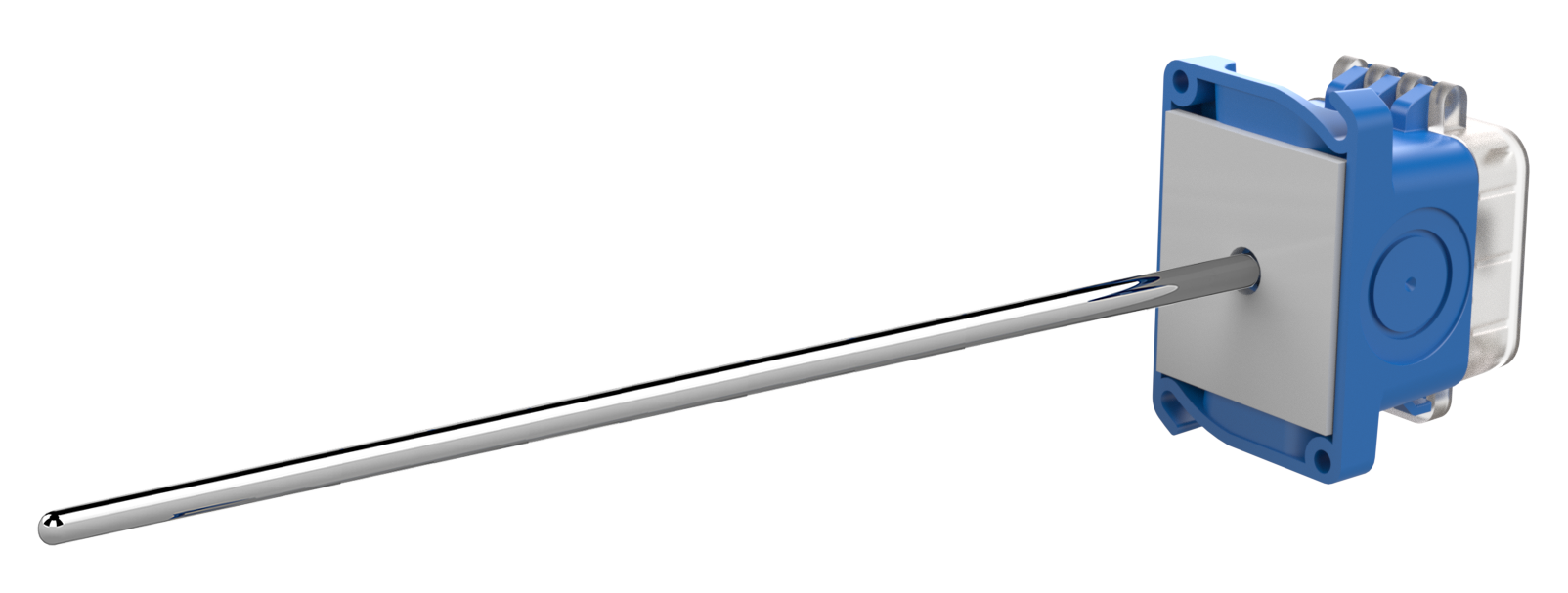 starrer Kanalmittelwert-Temperatursensor, 1K Platinum RTD (385 Kurve), BAPI-Box Crossover Gehäuse mit 600mm starrer Mittelwert-Temperatursonde (PT1000), Test & Balance-Schalter